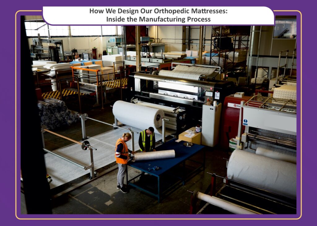 Quilting is an engineered step within the orthopaedic mattress manufacturing process. Quilting patterns are designed to enhance surface stability, regulate firmness, and prevent internal layer movement. Advanced quilting machines ensure uniform tension and long-term durability.